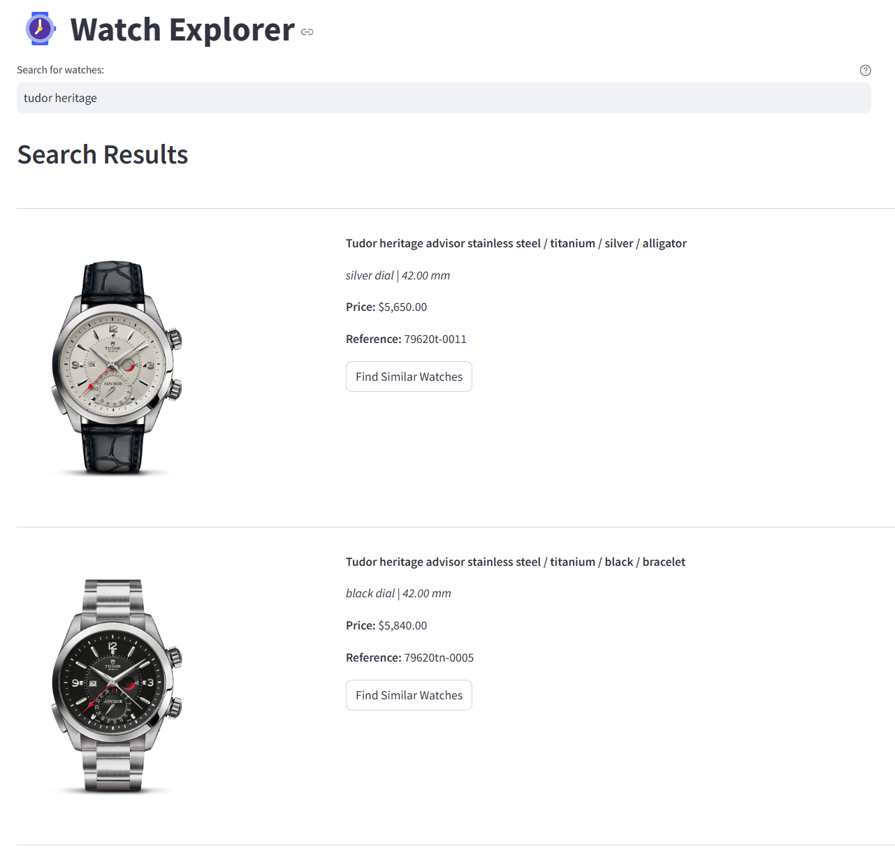 > The backend is coded in Python and uses components of sklearn in order to calculate the similarity between the watches.